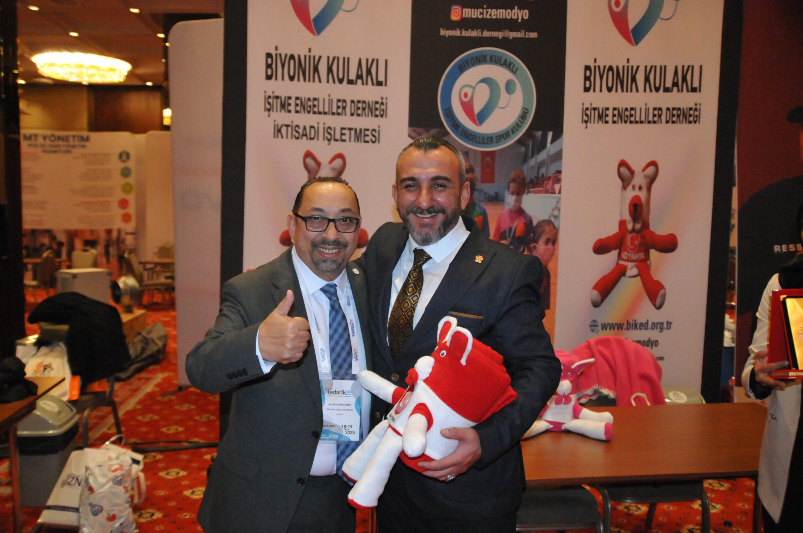 TEDARİK’25’de BİKİED-Biyonik Kulaklı İşitme Engelliler Derneği’nin Standı büyük ilgi gördü. Yaptığı projelerle, dezavantajlı gruplara verdiği desteklerden dolayı TÜYİAD Başkanı Erkut Yenice, BDU Başkanı Musa Karademir ve BDU Kurumsal İletişim Direktörü Ayşe Gamze Cevizli, BİKİED Başkanı Nimet Sarıkaya’ya Teşekkür Plaketi verdi.